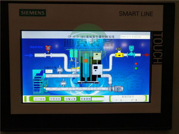 臭氧發(fā)生器設(shè)置1套封閉循環(huán)冷卻水系統(tǒng),通過(guò)板式換熱器換熱,為臭氧發(fā)生器提供冷卻水。并配置一臺(tái)冷卻循環(huán)水泵,冷卻循環(huán)水泵受PLC自動(dòng)控制系統(tǒng)監(jiān)控。冷卻水進(jìn)水管路設(shè)置壓力傳感器,用于檢測(cè)并反饋到PLC自動(dòng)控制系統(tǒng),冷卻水出水有溫度變送器、流量開(kāi)關(guān)等,當(dāng)冷卻水溫度超過(guò)設(shè)定值或者流量低于設(shè)定值時(shí)報(bào)警。本系統(tǒng)設(shè)計(jì)按外循環(huán)冷卻水入口溫度33℃,如水溫超過(guò)33℃時(shí),系統(tǒng)能連續(xù)穩(wěn)定工作,但產(chǎn)能有所降低,可通過(guò)調(diào)整運(yùn)行條件達(dá)到要求的臭氧產(chǎn)量。內(nèi)循環(huán)水建議采用蒸餾水。