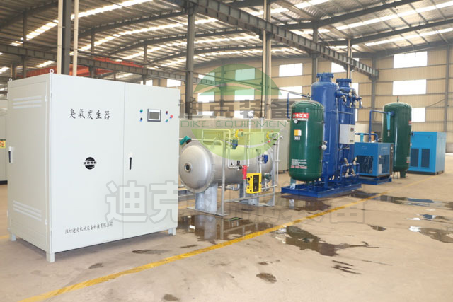 2:臭氧制備及控制系統(tǒng),前端輸送來的90%以上純度的氧氣經(jīng)過減壓閥組的作用,進(jìn)入到臭氧發(fā)生器的放電體內(nèi),臭氧發(fā)生器的放電體材質(zhì)304不銹鋼,外電極采用316L材質(zhì)的不銹鋼,絕緣介質(zhì)采用進(jìn)口石英材質(zhì),經(jīng)過精密軋制,管密度均勻,經(jīng)過30000V高壓的耐壓實(shí)驗(yàn),絕緣強(qiáng)度保障設(shè)備的安全運(yùn)行,內(nèi)外電極雙間隙放電,保證了臭氧放電的轉(zhuǎn)化率,風(fēng)冷+水冷的雙冷卻模式保障臭氧產(chǎn)量和濃度連續(xù)不間斷工作的穩(wěn)定,精準(zhǔn)控制的各種閥門采用ESG頂級品質(zhì),氣體流量儀表采用臭氧專用定制的渦街流量計(jì),密封采用四氟材料,配備精準(zhǔn)的在線濃度檢測儀,實(shí)時(shí)傳輸產(chǎn)出臭氧的濃度,與渦街流量計(jì)傳輸?shù)絇LC信號結(jié)合實(shí)時(shí)顯示臭氧產(chǎn)量,濃度,流量等參數(shù),氧氣在高壓逆變器的作用下,高頻高壓產(chǎn)生高純度的臭氧,臭氧濃度可以高達(dá)10WT%,完整體系的運(yùn)作保證產(chǎn)出的臭氧流量產(chǎn)量恒定,壓力可調(diào),最高可以到0.1mpa.